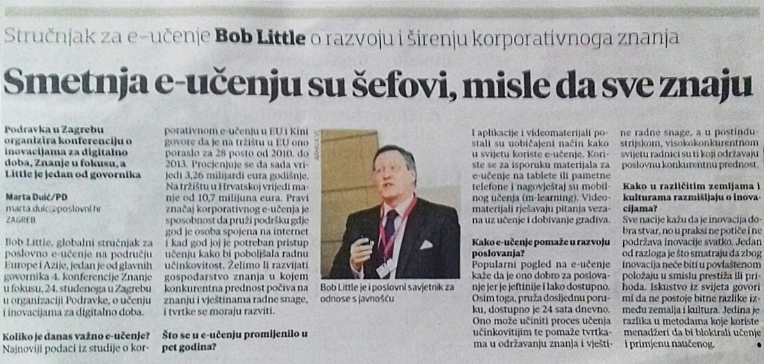 An interview with Bob Little was published in a Croatian daily